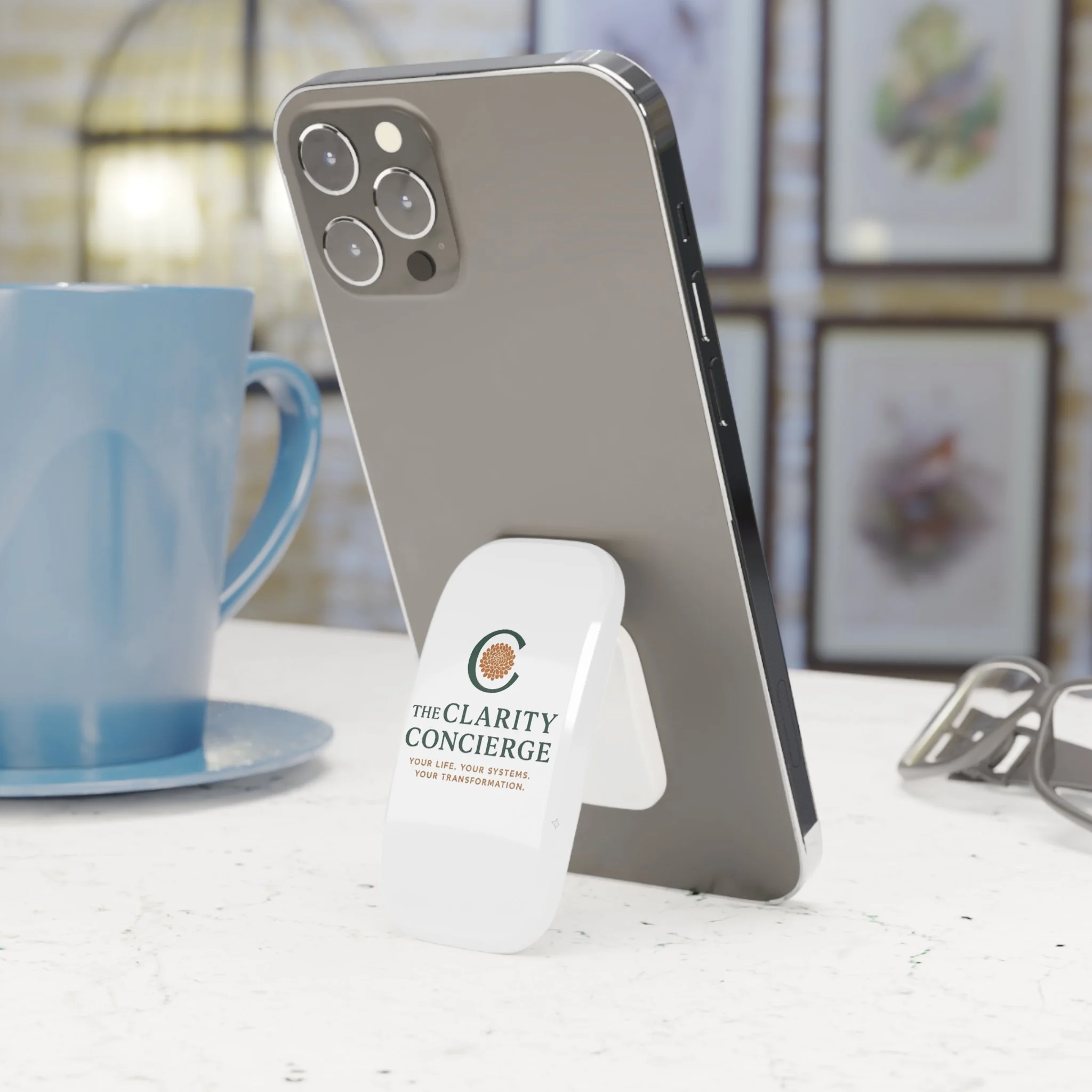 Whether you’re snapping a selfie, texting one-handed, or streaming your favorite show, the Clarity Grip makes it effortless. This personalized grip attaches securely to any phone with its re-adjustable, washable adhesive, giving you a reliable hold every time. Once in place, it enhances your smartphone experience with style, comfort, and convenience—because clarity and ease should always be at your fingertips.