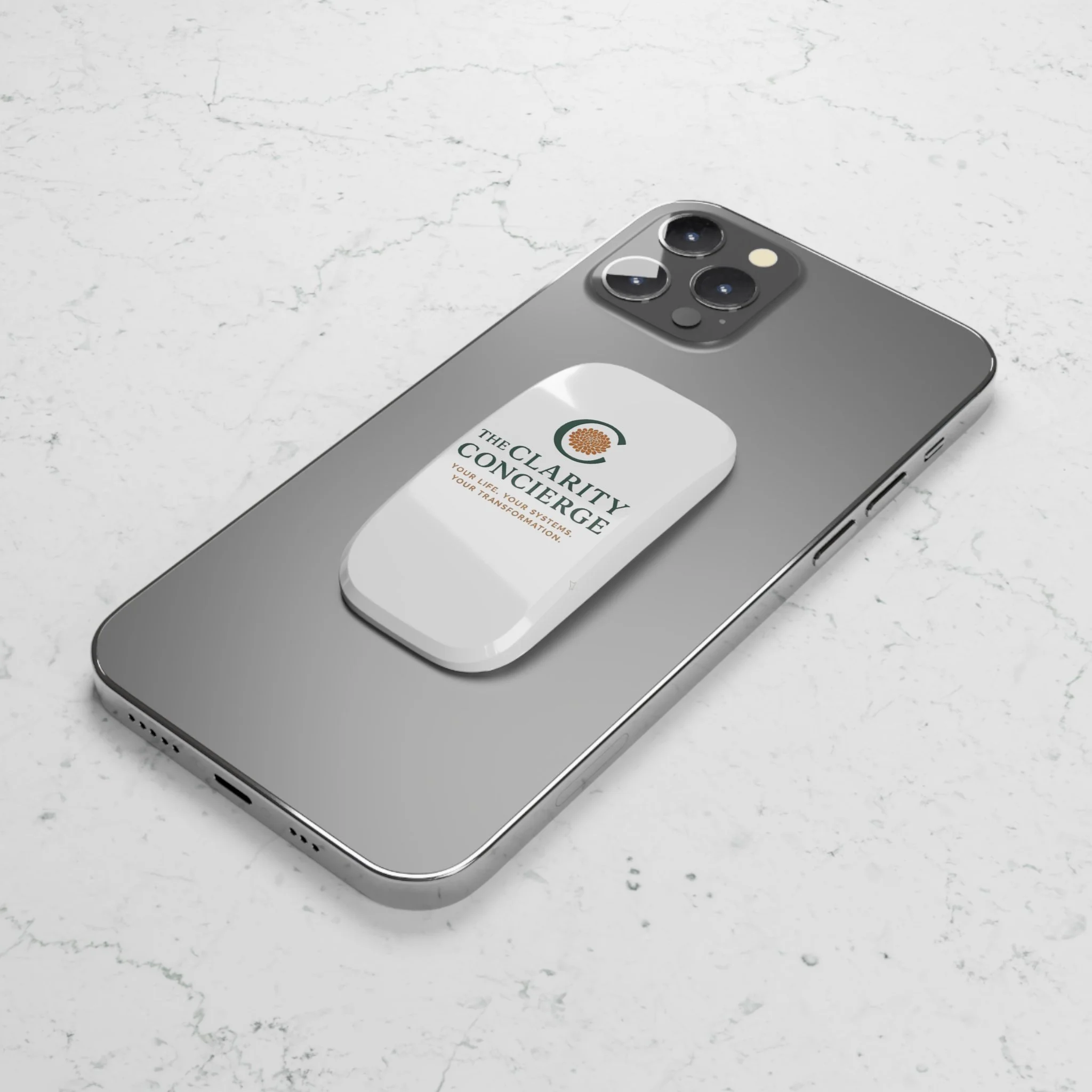 Whether taking a selfie, texting one-handed, or streaming your favorite show, the Clarity Grip makes it effortless. This personalized grip attaches securely to any phone with a re-adjustable, washable adhesive, providing a reliable hold every time. Thoughtfully designed for style, comfort, and convenience, it brings clarity and ease to your smartphone experience—keeping everything you need literally at your fingertips.